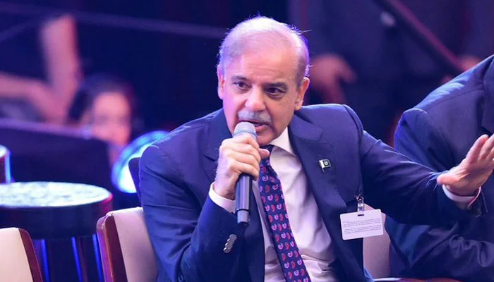 Prime Minister Shehbaz Sharif speaks to at an event on the sidelines of the 79th session of the UN